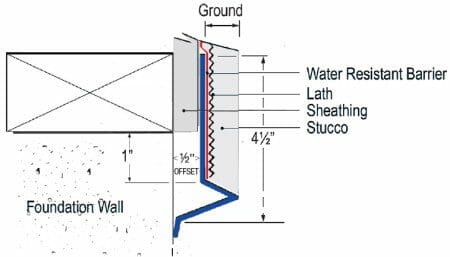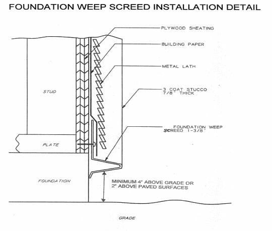 Additionally, the weep screeds vertical attachment flange must be a minimum 3-1/2 inch and be placed at or below the foundation plate of the exterior stud wall.