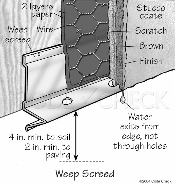 Having a clearance under the weep screed is desirable for best performance and is required by most building codes. Codes vary from jurisdiction to jurisdiction and year to year; however, the following requirements are common.