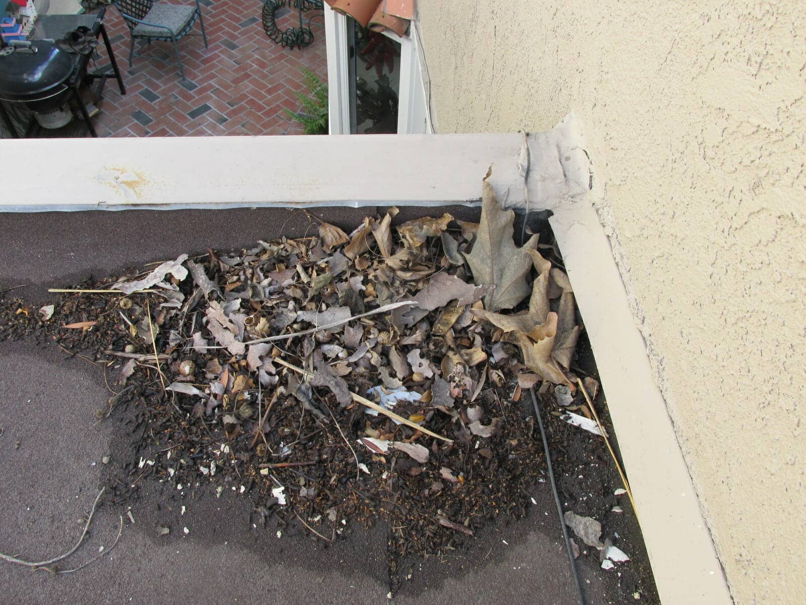 Flat type roofs often have leaves and other debris that gathers on them overtime. If the leaves and debris are not occasionally removed, the drains may get clogged or restricted by the debris. If water builds-up, leaking may occur and if the water builds up high enough, it can cause structural damage.