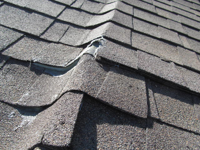 Occasionally the felt under the shingles was not installed properly or the shingles were installed to tightly on a cold day, then expanded on a hot day. This may cause the shingles to buckle or ripple a little.