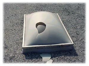 Skylights get cracked or damaged for a variety of reasons. Common reasons include thunderstorms, hail, tree branches or debris falling onto the skylight, sever temperature changes and over time the sunlight itself even weakens the skylight.