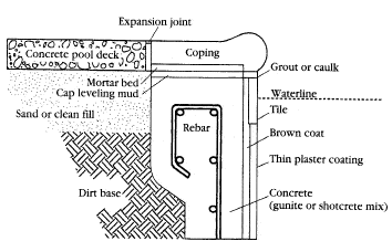 **Remember, **Special attention should be given to the joint between the coping and concrete pool deck. This joint should be sealed with an elastomeric type of sealant that will allow the expansion and contraction of the deck. There are two reasons for the elastomeric sealant: