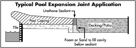 In most cases having the joint between a pool’s coping and concrete deck sealed with a flexible, not rigid material, will allow for expansion, contraction and movement without damage.