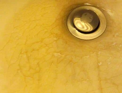 Miniature hairline spider like cracks may appear on cultured marble or acrylic sinks over the years. The thermal shock to the surface from turning the hot and cold water on causes many of these cracks.