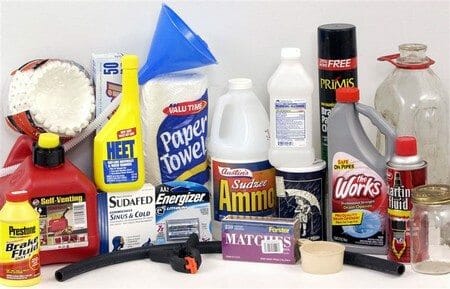 Alcohol, Ether, Benzene, Toluene/Paint Thinner, Freon, Acetone, Chloroform, Camp Stove Fuel/Coleman Fuel, Starting Fluid, Anhydrous Ammonia, “Heet”, White Gasoline, Phenyl-2-Propane, Phenylacetone