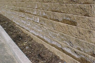 If a retaining wall is constructed from masonry block, brick or concrete, and has a white powdery or chalky looking substance on it, then it’s probably efflorescence. This is usually a sign that moisture is slowly migrating through the wall.