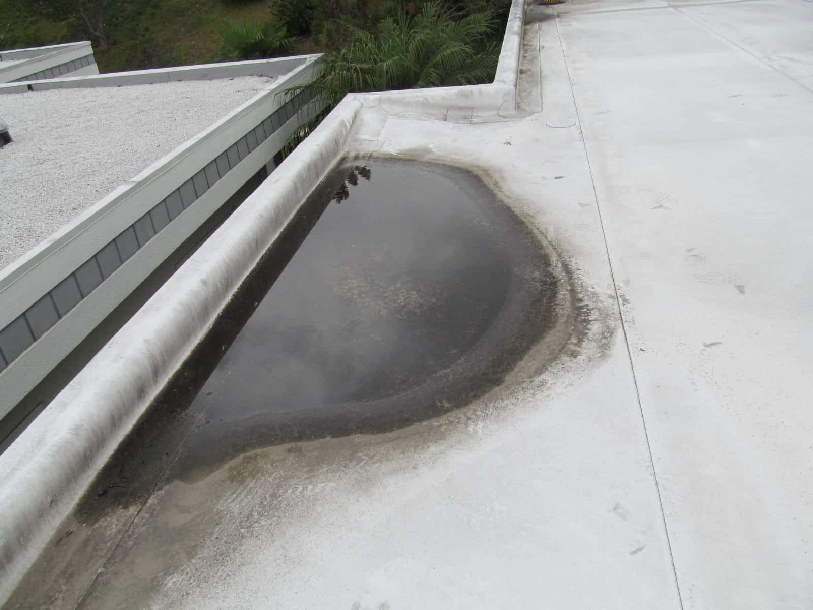 Many so-called “flat roofs” have some ponding. Flat roofs really shouldn’t be flat. They normally will have at least a ¼ inch to a foot slope, and many roofers prefer more. The more the roof slopes, the less ponding that will occur.
